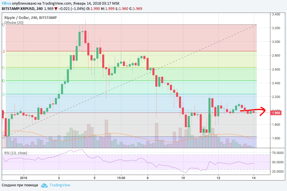 Итак пара XRP/USD сейчас находится в боковом флэте, в области 2.00 доллара за монету, и занимает третью строчку в списке криптовалют по объёму капитализации. На этой неделе Ethereum выбил Ripple со второго места восстановив таким образом «Статус кво».