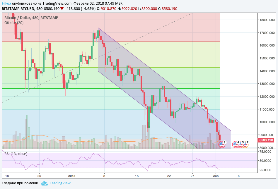 Первого февраля 2018 года все криптовалютные пары находились под медвежьим давлением. В результате капитализация криптовалюты, впервые в 2018 году, снизилась ниже уровня 430 млрд долларов США. 2 февраля падение продолжится.