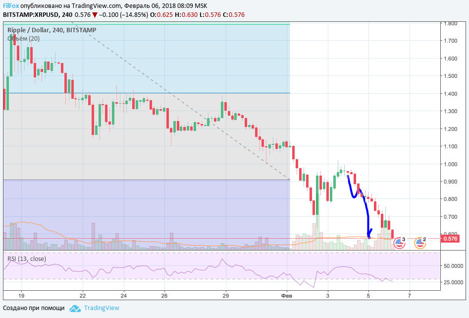 Ripple, в отличии от Ethereum и Bitcoin, которые довольно точно подтвердили прогнозные значения цены, вчера не смог достигнуть целевой отметки 55 центов. Дневной минимум был зафиксирован на отметке 66 центов за рипл. Сегодня движение к цели 0,55 USD продолжится, после чего пара XRP/USD консолидируется на уровне 0.63 USD.