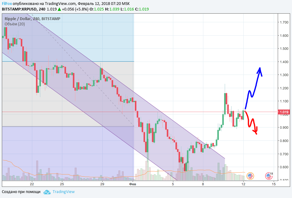 Аналогичная ситуация и с Ripple. Сейчас равновесное состояние курса один - доллар за рипл. Сегодняшнее сползание курса ограничится уровнем 0.900 USD, а в случае роста - дневной максимум будет находится в диапазоне 1.35 USD -1.40 USD