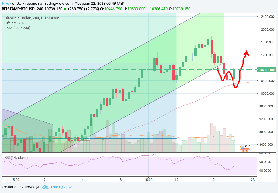 Ближайшее фундаментальное событие, которое может повлиять на дальнейшую динамику цены Bitcoin, связывают с проведением встречи Главы Центробанка ЕС и представителей бирж по вопросу регулирования криптовалюты. Несмотря на позитивные взгляды на будущее криптовалюты, существует опасность в лоббировании жестких мер в сфере биржевой торговли и проведения ICO. Исход этой встречи способен повлиять на дальнейшее поведение Bitcoin. Если цена на биткоин пробьёт уровень шеи, пока ещё не сформированного патерна, то возможен разворот и смена восходящего тренда на даун-тренд. Если же цена сможет закрепиться выше 12 000.00 USD, то восходящая тенденция продолжится.