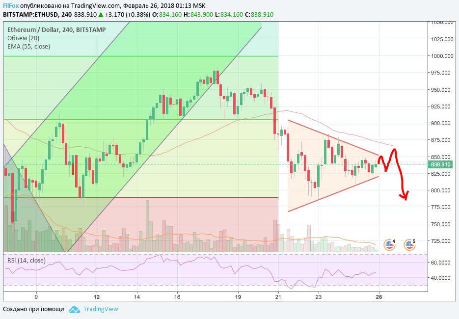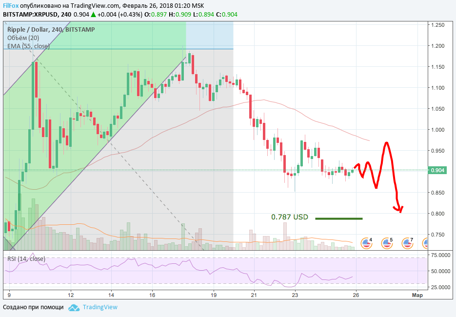Скорее всего, цена на Ripple, тоже продолжит движение в бок, но, возможно, увеличит амплитуду отклонения от равновесного состояния, которое цена нащупала на уровне 0.900 USD. Положительную динамику цене Ripple могут придать фундаментальные события, но информация о том, что к проекту использования сети Ripple Net в сфере международных платежей, присоединились ещё два крупных международных банка и две платёжные системы, не отыграла должным образом на повышении стоимости монет рипл. Мы продолжаем следить за новостным фоном. Подпишитесь на наш профиль в Tradingview и не пропускайте больше ни одного обзора! https://ru.tradingview.com/u/FilFox/