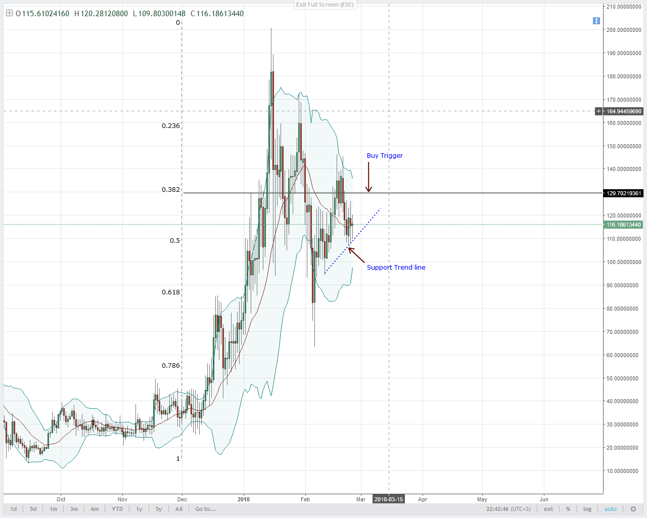 На данный момент я придерживаюсь нейтрального взгляда относительно всех альткоинов. Больше всего на этой неделе я буду освещать EOS и NEO, потому что от NEO ожидается рост выше $130 или же пробой трендового уровня поддержки