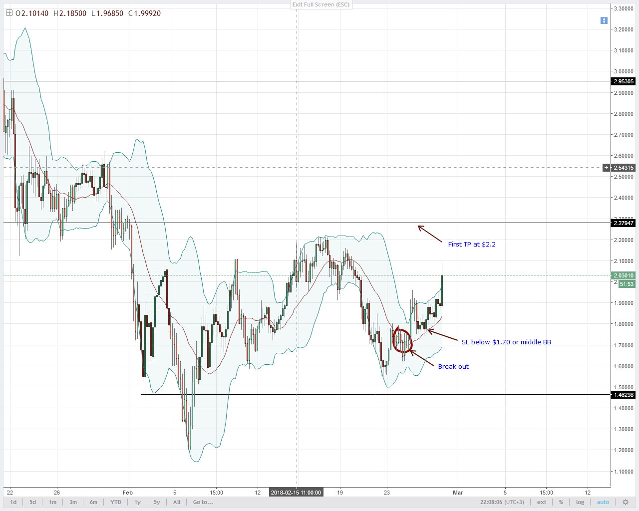 Согласно нашему вчерашнему прогнозу, мы должны получить первый уровень прибыли, и любой высокий уровень будет означать, что нам нужно открывать ордера и перемещать наши бычьи цели на $3.00.