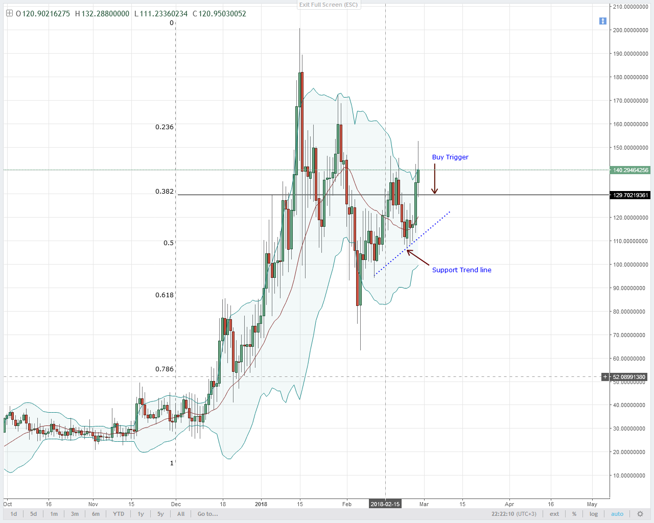 При цене в $140 покупатели могут перенести свои стоп-лоссы, установленные ранее на отметках от $120 до $125, и ждать дальнейшей оценки.