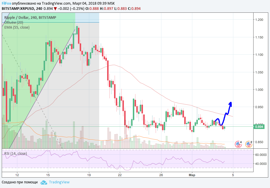 Ripple шесть дней находился в боковом диапазоне, постоянно сужая амплитуду отклонения от своего равновесного состояния на уровне 0.905 USD. Но даже временное снижение цены BTC не вывело пару XRP/USD из этого равновесного положения. Теперь остаётся один вопрос, отреагирует ли ростом XRP на бычий импульс BTC/USD (если он, конечно, будет сегодня)