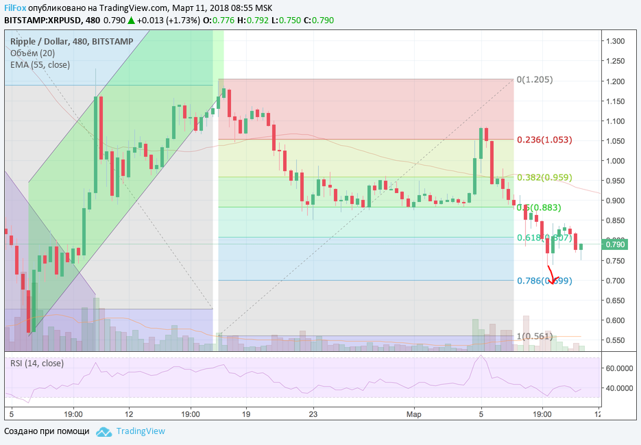 Аналогичная ситуация происходила и с Ripple. Своё привычное равновесное состояние 0.905 USD рипл покинул во вторник и, следуя примеру BTC/USD, курс XRP/USD упал до недельного минимума 0.733 USD. По масштабам Ripple, падение цены не выглядело катастрофическим, и в пятницу цена восстановилось в область 82 цента за рипл. Дальнейшее восстановление к своему равновесному состоянию будет синхронизировано с ростом Bitcoin. Поэтому запасаемся терпением и следим за фундаментальными новостями.