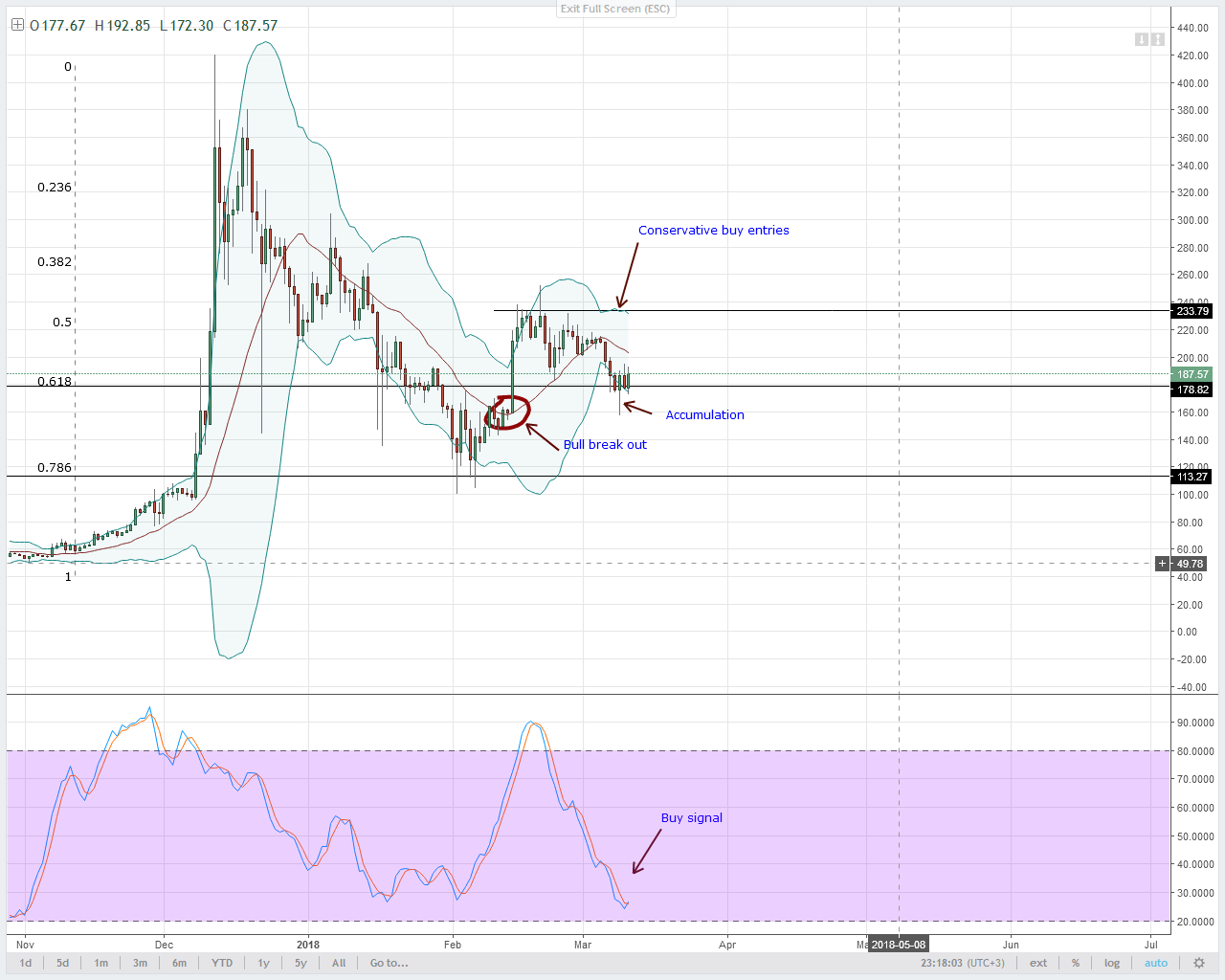 Помните, что главное - это терпение. На данный момент, если вчерашняя бычья свеча продолжит расти, высоки шансы того, что будет достигнут максимум в $200.