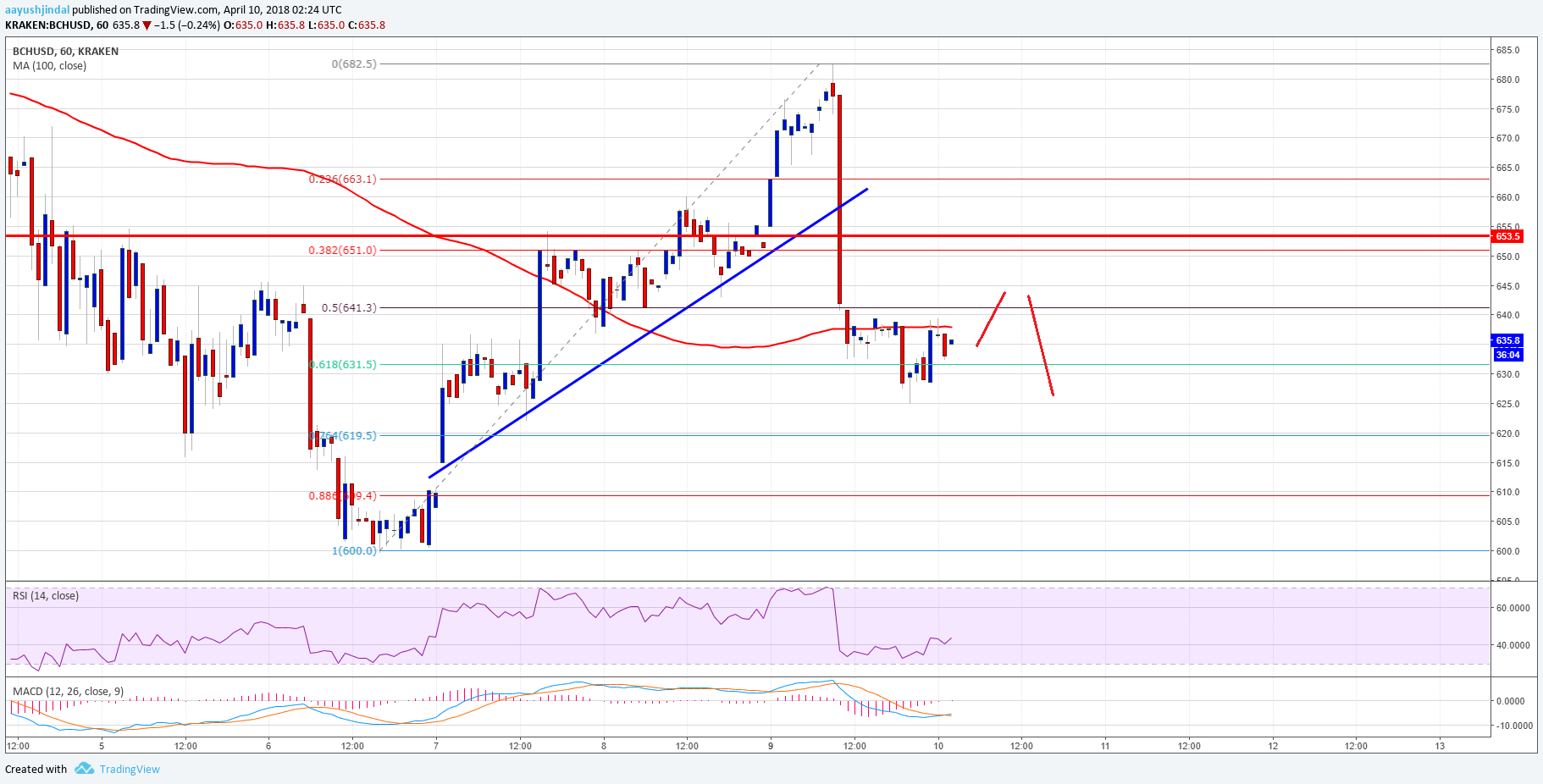 Позднее, BCH преодолел отметку $700. На данный момент bitcoin cash торгуется выше отметки $680 и 100 часовой MA. Тем не менее, рост цены был остановлен в зоне $723-725.