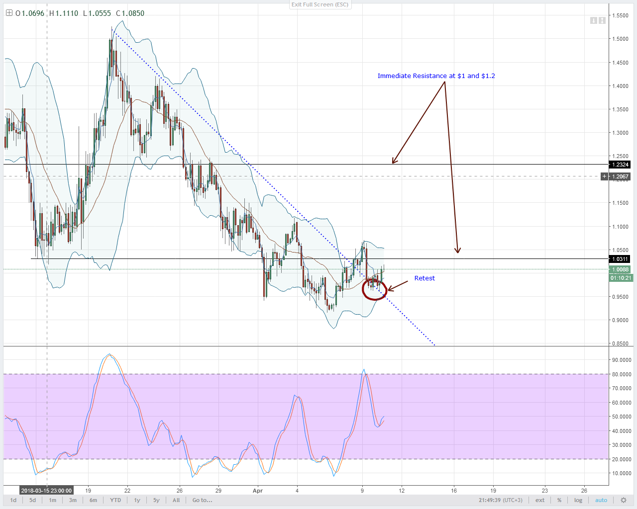 Однако, если цены прорвут линию сопротивления и $0.22, я бы рекомендовал покупать с краткосрочными целями в $0.30.