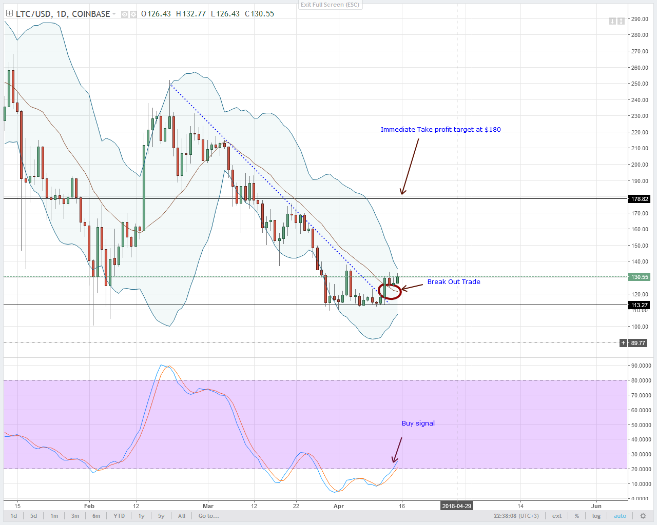 Судя по техническому анализу, цены находятся стадии консолидации. Несмотря на то, что Litecoin в целом вырос, прибавив к своей цене 11% за последнюю неделю, он находит сильное сопротивление на отметке $130 несмотря на бычье давление.