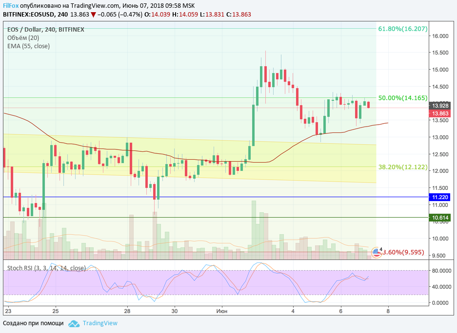 Сегодня консолидация пары EOS/USD под уровнем 50% фибо (1084.00 USD) продолжается. Вчерашнее снижение в область средних цен и возврат на прежний уровень, можно не принимать во внимание и списать на сильную кореляцию альткоинов с Bitcoin. Здесь EOS ничем не отличается от остальных крипто-активов рынка. Консолидация продолжится и сегодня, если не будет провокаций раскачать рынок с помощью пары BTC/USD.