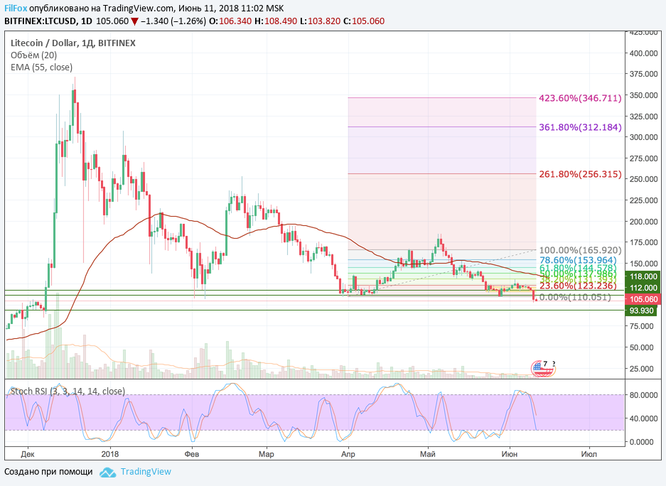 Ltecoin в воскресенье обновил годовой минимум, установленный 6 февраля 2018 года на отметке 106.52 USD до уровня 102.70 USD. Надо полагать, что последнее слово в годовых минимумах ещё не сказано. Следующий минимум может быть в области 93.93 USD.