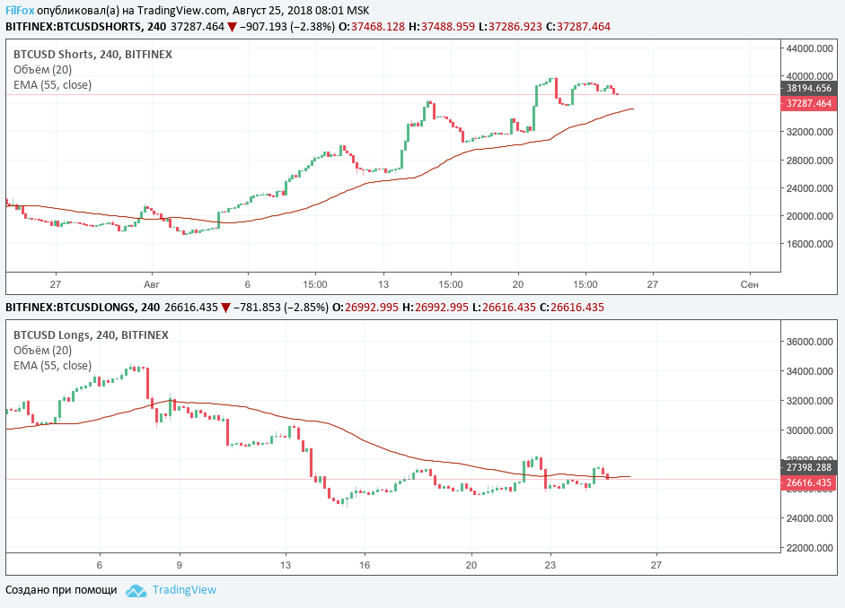 Более того, количество лонгов за последнее время сократилось примерно на тысячу позиций. Конечно же по этой информации можно судить только о настроениях трейдеров Bitfinex и их уверенности в дальнейшем снижении цены.