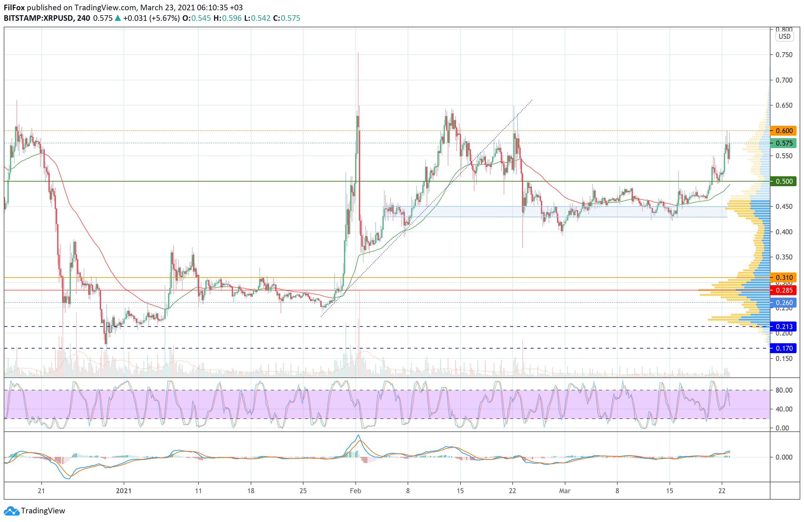 В конце прошлой недели цена XRP закрепилась выше психологической отметки 0.500 USD, а вчера пара продолжила рост в область 0.600 USD. После продолжительного затишья на рынке Ripple сейчас отмечается некоторое оживление торгов и всплеск волатильности пары.