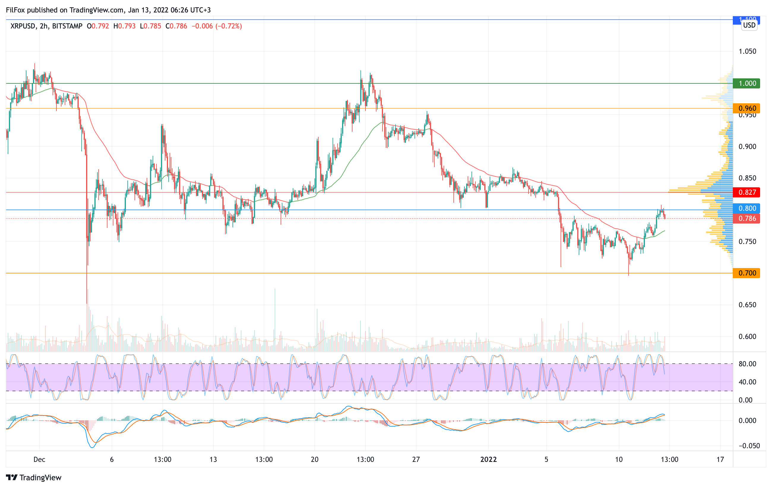 Вчера пара XRP/USD закрепилась выше уровня средних цен. В течение дня восстановление продолжилось к сопротивлению 0.800 USD.
