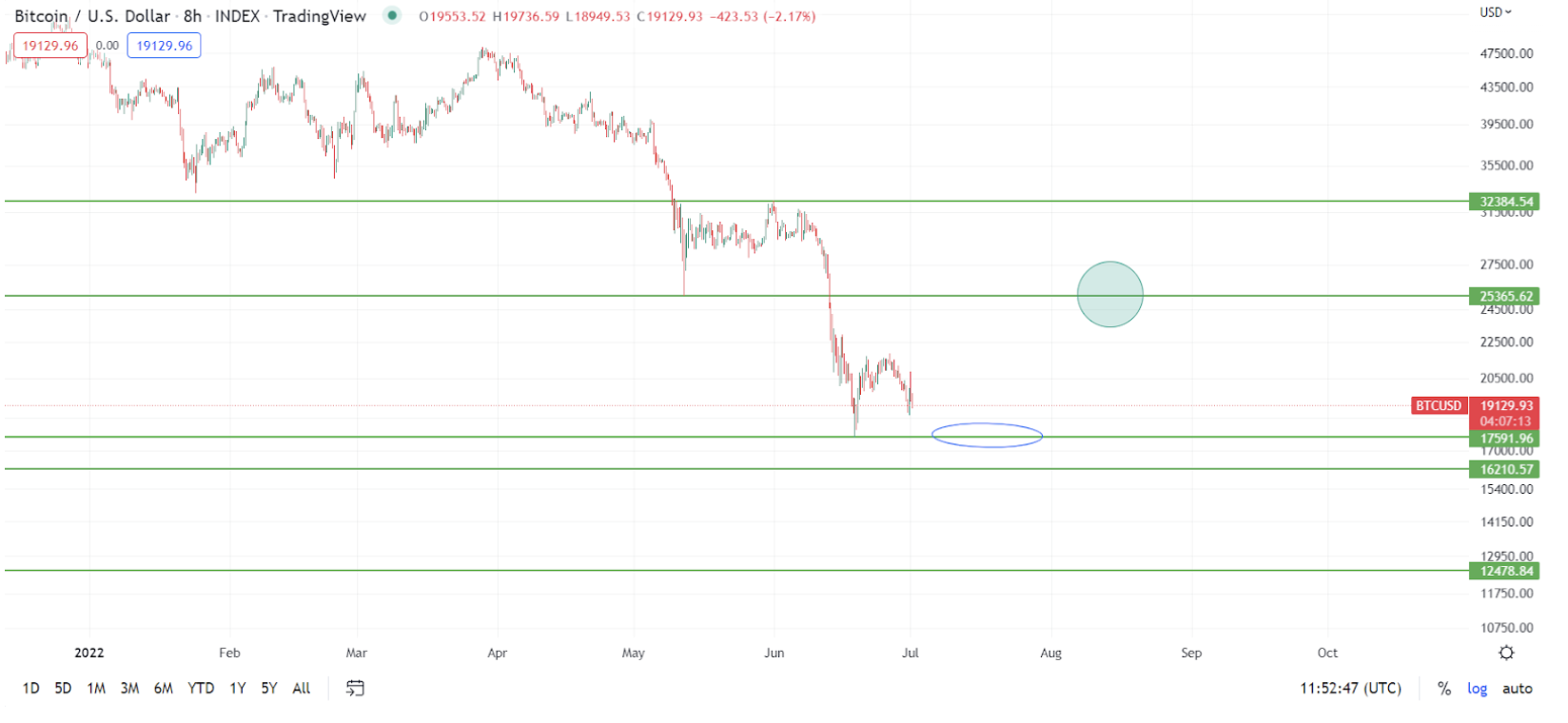 Сейчас на рынке царит неизвестность и не понятны ближайшие остановки по биткоину. Вероятно, что в случае пробоя $17600 нас ожидает дальнейшее снижение.