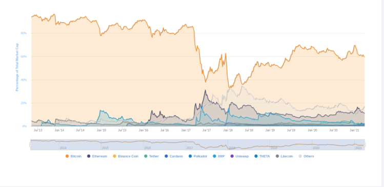 В то время, как Bitcoin пытается пробить психологическую отметку в $60,000, рынок альткоинов не прекращает стремительно расти.