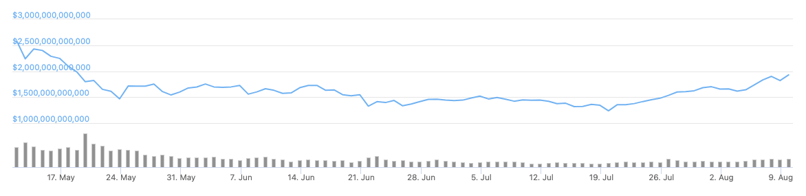 Согласно CoinGecko, капитализация рынка криптовалют в понедельник пробила отметку $1.9 триллионов впервые с 18 мая. Несмотря на это, рынок все еще просел на $700 миллиардов от своего исторического максимума в $2.5 триллионов, установленного 11 мая.