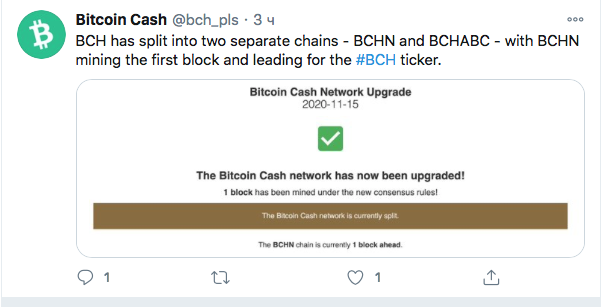 Последним «общим блоком» среди майнеров BCH стал блок 661647, добытый пулом Binance. Первый блок новой цепи был добыт AntPool. С тех пор хэш-мощность сети BCHN значительно превышает хеш BCH ABC.
