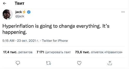 “Гиперинфляция все изменит. Это уже происходит” - написал финансист и криптозащитник.