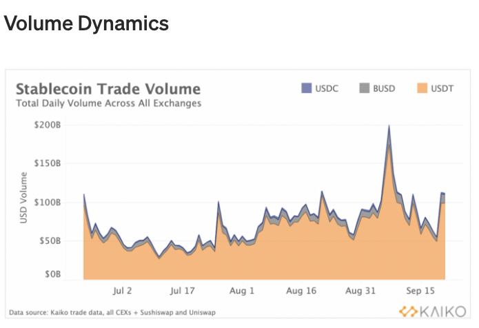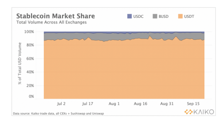 Сегодня в тройку крупнейших стейблкоинов по рыночной капитализации входят Tether (USDT) (рыночная капитализация более $68 миллиардов), Circle’s USDC (рыночная капитализация $33 миллиарда) и BUSD Binance (рыночная капитализация $13 миллиардов). В совокупности ежедневные объемы торговли для трех стейблкоинов в среднем составляют от $80 до $100 миллиардов каждый день.